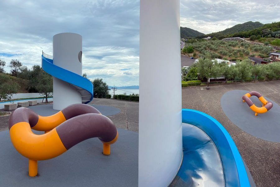 Noguchi also made items for children’s playgrounds. On Shōdoshima, you can see one of his slides and some sort of brown and orange doughnut on legs. Even these kids’ funnables come with a little spiel of pompous tosh, but the sadly funny thing is, they don’t even work as playground furniture because all the fun has been simplified out of them by the master’s mania for purity of form. The slide doesn’t even work because the curve is too tight.