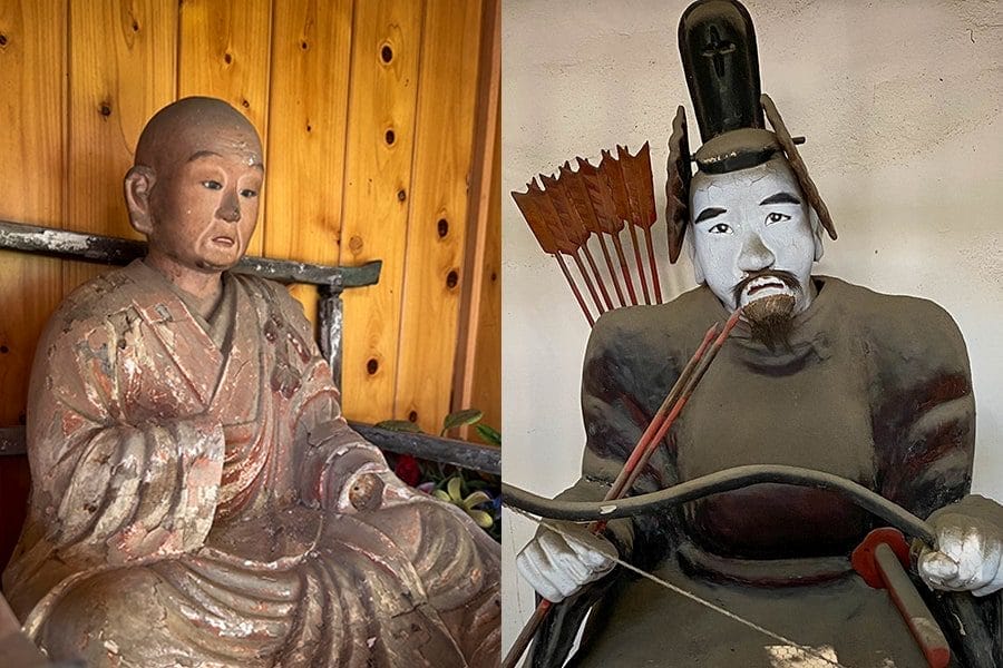 There is genuine, extraordinary, moving, mysterious art all over Shikoku. The major shrines and temples are utterly encrusted with the wood carver’s art of the most exquisite quality. Peep into even the tiniest shrine on the road beside a rice paddy, and you’re likely to discover a memorable archer, or Kūkai missing his hands.