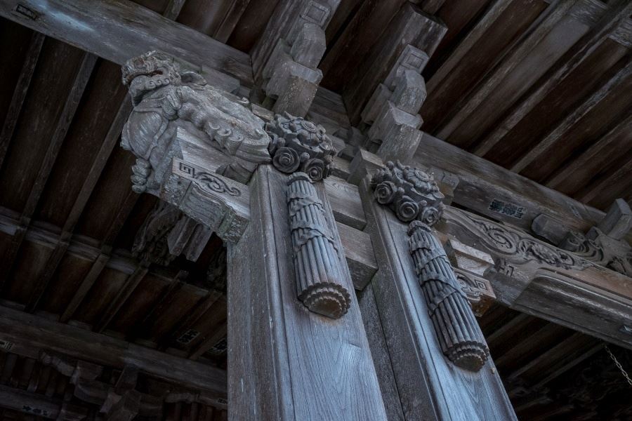 In contrast, whoever built the Daishi Hall at Iwaya-ji had fully mastered the immensely complex techniques of traditional temple carpentry. Of course, traditional temple architecture developed to complement the natural environment anyway, but the Iwaya-ji architect harmonised his structure with the unique towering cliff behind it by employing taller than usual uprights. This alone is impressive, but the Iwaya-ji architect also aimed for a touch of modernity through early adoption of art-deco ornamentation which was reaching Japan around that time. Not satisfied with complete mastery of beautiful form alone, the architect adapted the latest modern trends without precipitating any feeling of incongruity. Now that is quite a feat.