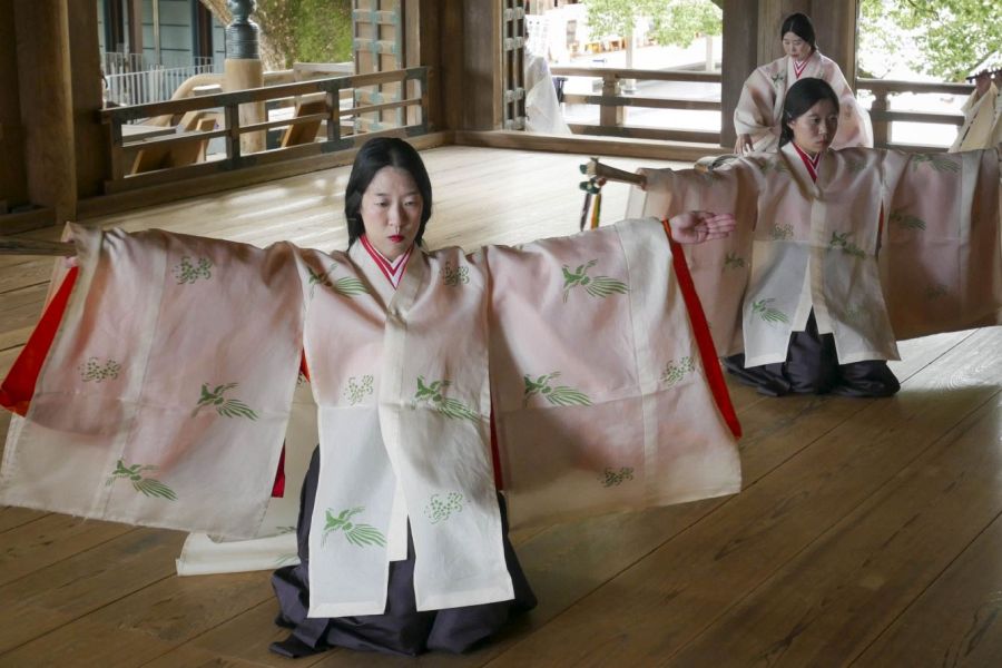 Staffed by Shintō priests (kannushi), who conduct rituals and maintain the grounds. They wear white robes and black hats. They don’t shave their heads.