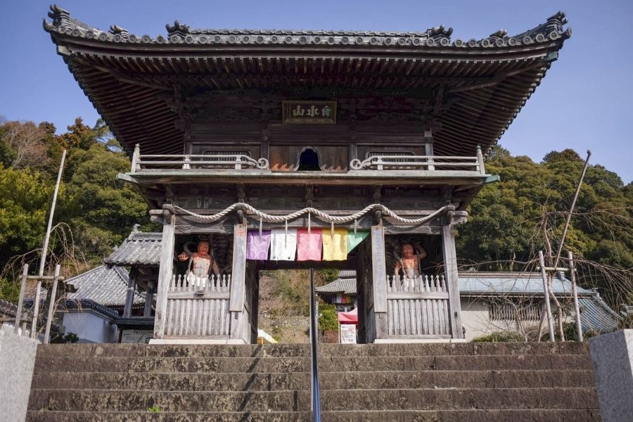 Temples often have substantial gates (sanmon), roofed structures made of wood or stone.