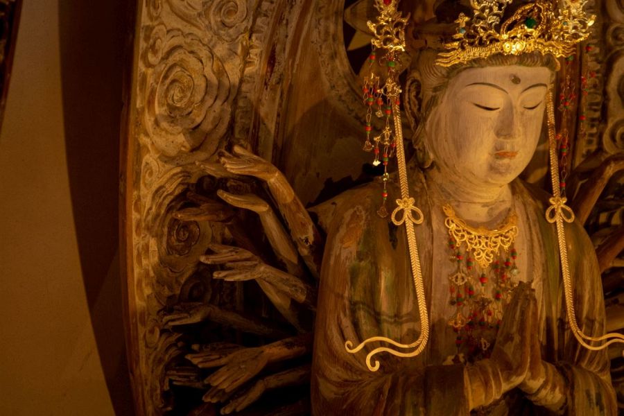 Temples enshrine Buddhas, bodhisattvas, and other figures. These are typically represented as statues inside the main hall and around the precincts.