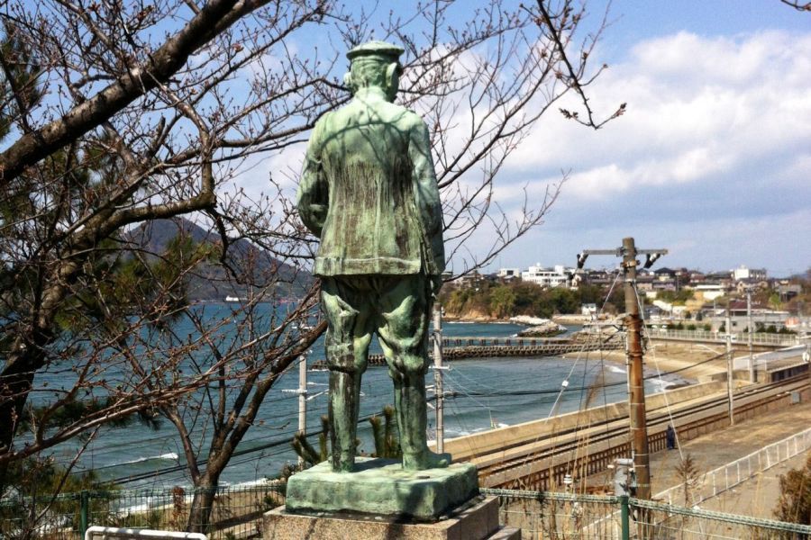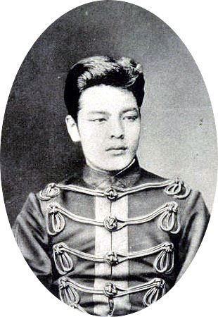 Akiyama Yoshifuru was the third son of a poor samurai in the Matsuyama Domain, Iyo Province, today’s Ehime Prefecture. His birthplace in central Matsuyama is now a museum, featuring an impressive horseback statue of Yoshifuru, and a bust of his younger brother, Saneyuki, who became a celebrated Vice Admiral. The Akiyama family was so short of money that the young Yoshifuru was obliged to perform menial work at a public bathhouse.