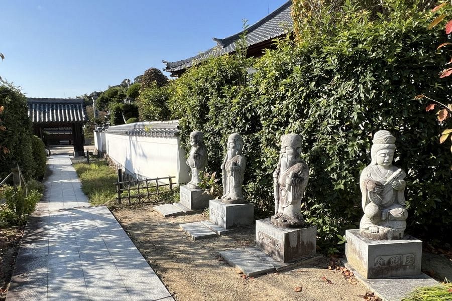 Across Japan there are also Seven Gods pilgrimages linking seven temples or shrines, each dedicated to one deity. These routes are modest in scale — often urban and walkable in a few hours — and are especially popular in early January. They combine worship with seasonal outing, reinforcing the idea that good fortune is something sought through small, repeated acts rather than grand gestures. The gods are often found at the temples of the Shikoku Pilgrimage.