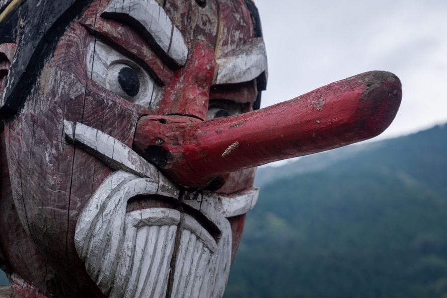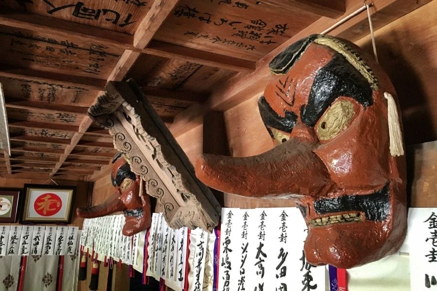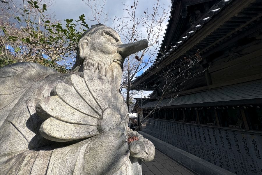 Early Buddhist texts often cast tengu as malevolent demons who obstruct enlightenment. On the Shikoku pilgrimage, Kūkai is said to have ‘debated’ and ‘overcome’ tengu and other supernatural beings, ‘exiling’ them to the very ends of Shikoku. This could be interpreted as a doctrinal conflict with Shugendō and the followers of En no Gyōja who is typically depicted with some tengu-like characteristics. Later folklore presents a more nuanced image of tengu, blending fear, respect and humour.