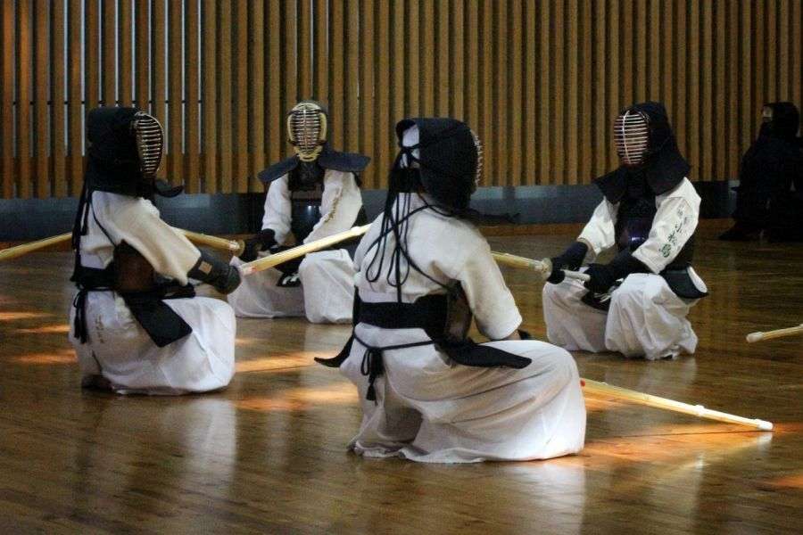 At first glance, the kendo people look like an undifferentiated mass as they’re all wearing the same dark blue cotton clothes. But in fact they’re male and female, old and young, intermingled in what looks like a very comfortable manner. As they all made their way, wooden swords in hand, to the middle of the floor to hear the closing remarks of the judges, a boy of about ten noticed me, stopped, bowed and carried on his way, all in a few seconds. I have rarely been so moved by a brief acknowledgment.