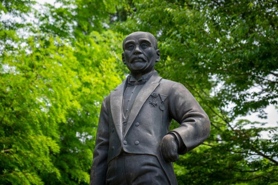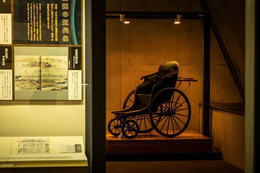 The exhibition hall is built next to a large pond dug in the Edo period to feed local rice fields. Built in a modern style by the architects responsible for Tokyo Sky Tree, the exhibition hall is designed to resemble a ship. The resemblance is especially recognisable when viewed from the other side of the pond. The tower is actually a periscope, and mirrors inside show views of the mountain where the mine is located, and the port of Niihama from which Saihei’s beloved smoke rose. At the entrance to the museum is a life-size bronze of Saihei Hirose. The exhibition hall presents the life and achievements of Saihei Hirose using contemporary artifacts, reconstructions, and videos. It also depicts the early years of Niihama and the industrialization of Japan.