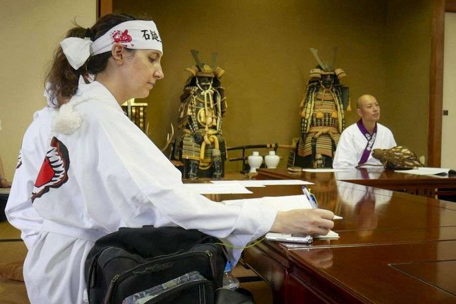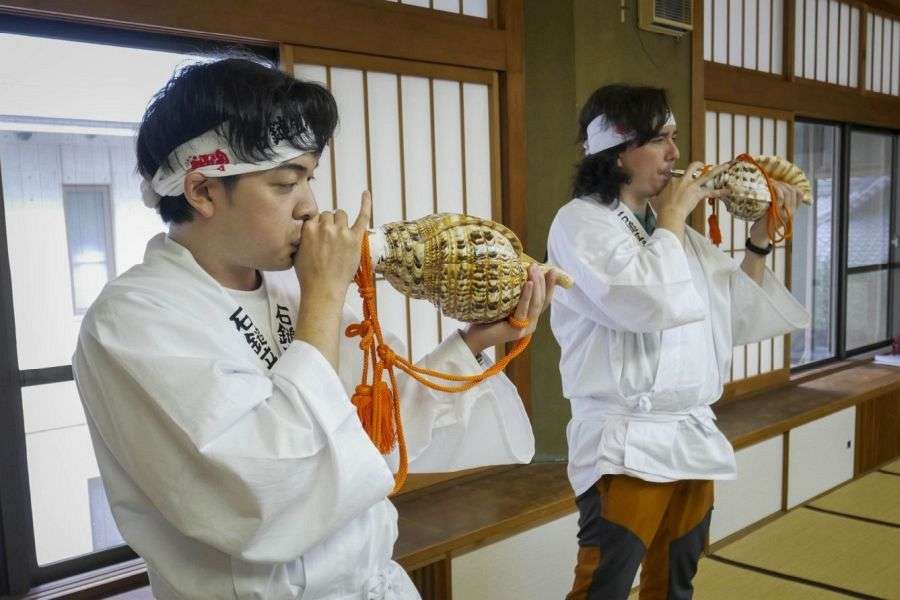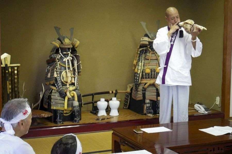 The main hall of the shrine itself is a painted concrete building. It stands in an expansive plaza with a broad view of Saijō and the Inland Sea. On a clear day, the view is spectacular. If you’re lucky, you may hear the priest playing constantly changing rhythms on the enormous shrine drum.