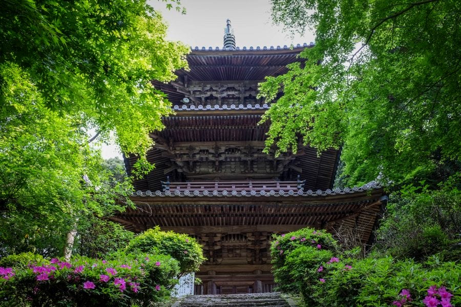 The three-storey pagoda, Niō Gate and Chōkushi Gate are particularly beautiful.