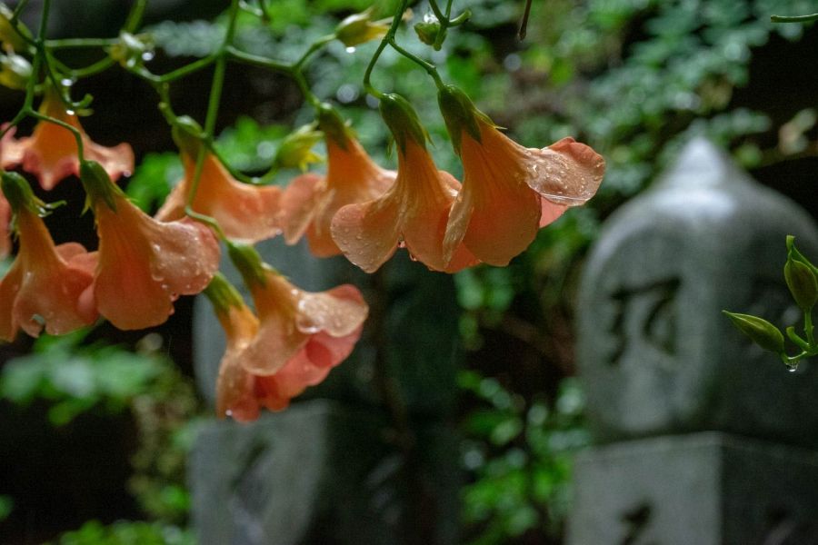 The grounds are a beautiful, well-tended garden and the temple building is largely hidden from view by the tall trees that surround it. Cherry blossoms, lotus flowers, peonies, hydrangeas, acanthus and other flowers bloom in due season.