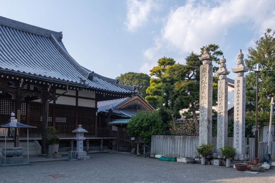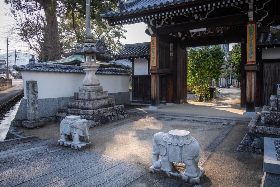Kichijō-ji is Temple No. 63 on the Shikoku pilgrimage, or Henro. It stands between busy Route 11 and the JR Yosan railway line, with a number of tall trees growing in its precincts, which give it a luxuriously leafy atmosphere.