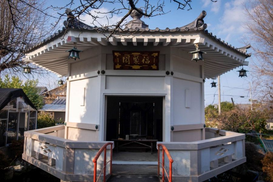 Legend has it that when Kukai visited, he found a cypress that radiated light. He carved a statue of Bishamonten from this sacred tree, and also carved statues of Kichijōten and Zennishidōji as flanking deities. He built this temple as a place to pray for relief from poverty. Every temple has a votive image representing something of Buddhist significance, and Kichijō-ji is unique in having a Bishamon statue. Bishamon is one of the Seven Lucky Gods revered in Japan. They originated in India and China from various Hindu and Taoist backgrounds. Bishamon’s wife is Kichijōten (Lakshmi), and the temple takes its name from her. Bishamon is a warrior who serves as guardian of the places where Buddha preaches. There’s a little eight-sided building with a Chinese appearance which holds statues of the six lucky gods other than Bishamon.