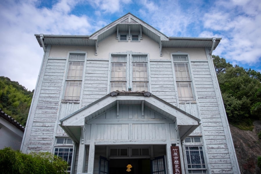 The Takehara Museum of History and Folklore is housed in a wooden building in the old town, where it stands out for its Western style and its peeling light blue paint. Its tall windows interspersed with unbroken panels of siding make the building appear tall and somehow aspirational. The museum displays materials related to the local salt and sake industry, and exhibits related to the city’s people, history, and culture.