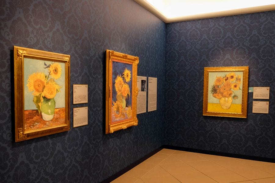 Another distinctive feature involves attempts to reconstruct works no longer extant such as Leonardo da Vinci’s Last Supper prior to restoration, or Van Gogh’s Sunflowers, lost in wartime, and works dispersed across various locations due to wars, such as El Greco’s Altarpiece of the Holy Family.
