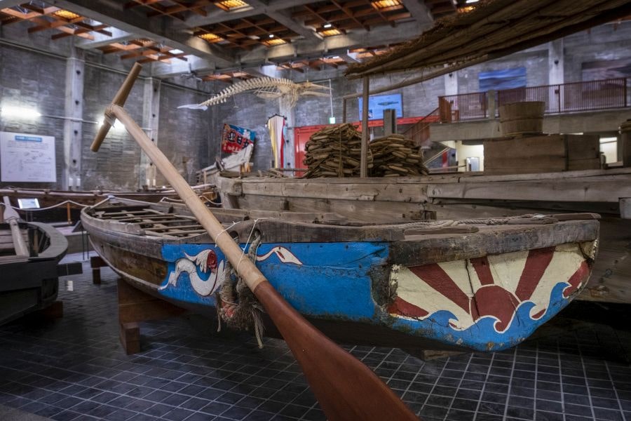 The exhibits include numerous real ships of considerable size, as well as model ships and a whale skeleton. The economic life of the area is represented by displays of maritime and agricultural tools while the culture life is represented through art works and festival paraphernalia.