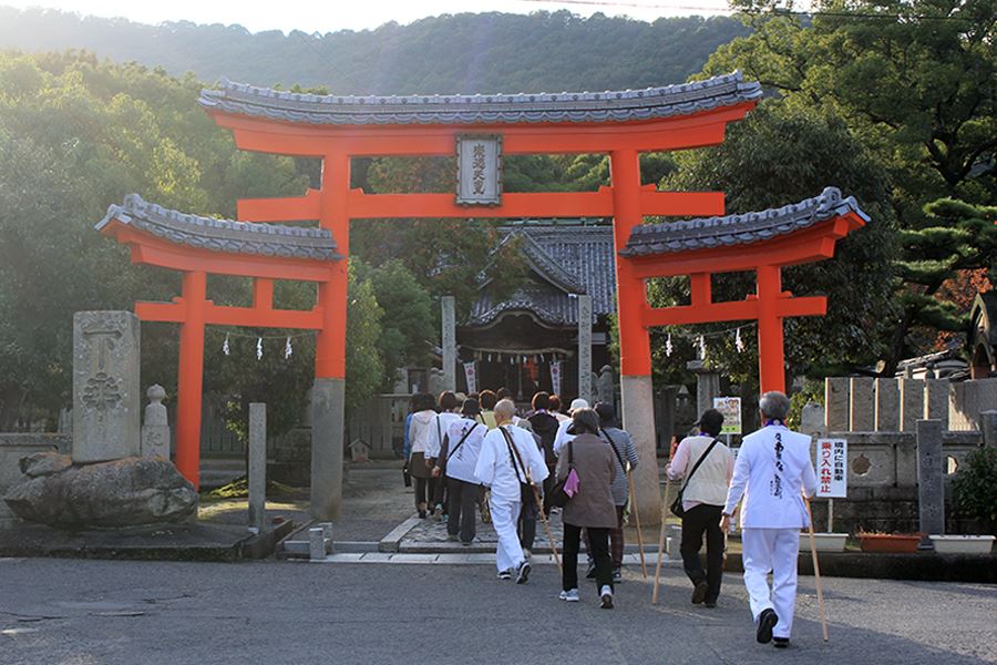 Shortly before the Meiji Restoration, by imperial decree of Emperor Meiji, the spirit of Sutoku was returned to Shiramine Shrine in Kyōto. Sutoku Tennō Shrine ceased enshrining the retired Emperor Sutoku and was renamed Shiromine Shrine. Furthermore, the decree for the separation of Shintō and Buddhism in the early Meiji period compelled temples within shrine precincts to relocate or be abolished. The new government also took a hard line against temples under the temple patronage system, leading to the abolition of Manishu-in. However, the head priest of Manishu-in was appointed as the first shrine priest, and the 79th pilgrimage temple was taken over by nearby Kōshō-in. In 1887, after the disruption of the separation of Shintō and Buddhism had subsided, Kōshō-in relocated to the present site of Manishu-in’s former grounds, becoming Tennō-ji Kōshō-in.