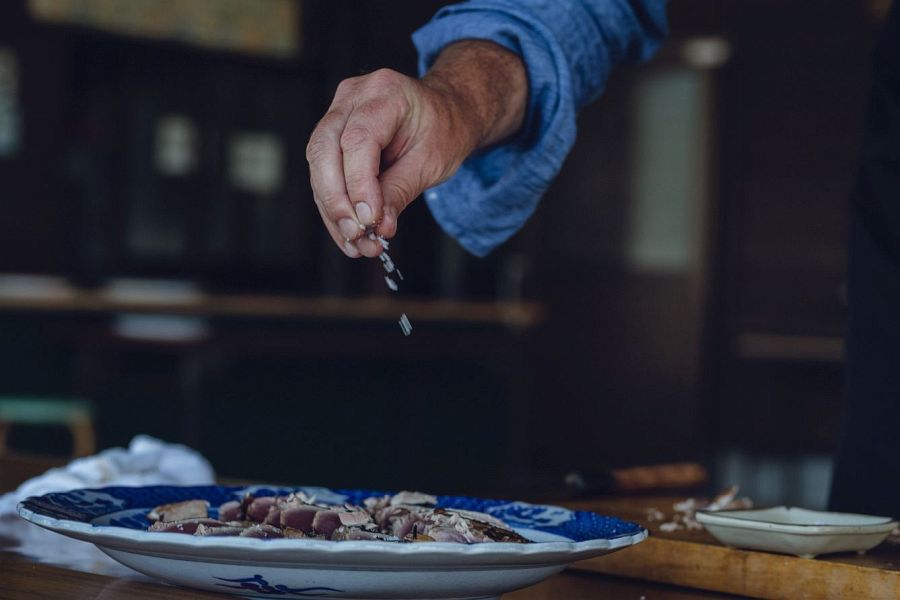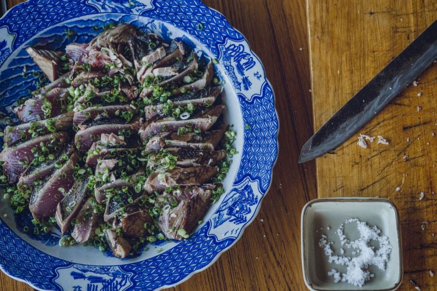 Katsuo no tataki is the signature dish of Kōchi prefecture. Bonito from local fishing ports is filleted and seared over a straw fire. It’s an impressive sight. At Kuroshio Ichibankan, you can try your hand at preparing this dish yourself.