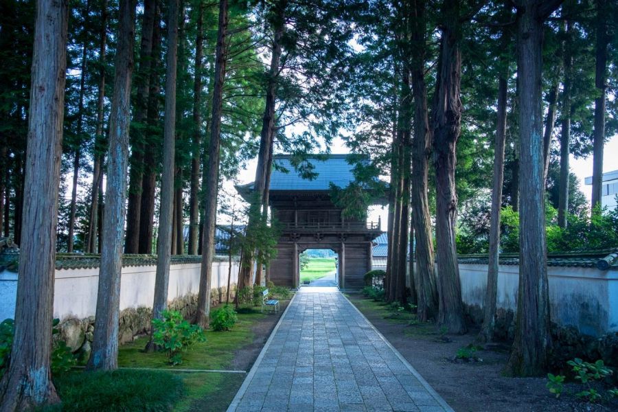 Turning right after the belfry is an inner gate. Surrounding a garden are the Kōmyō Hall, a storehouse, and the temple office.