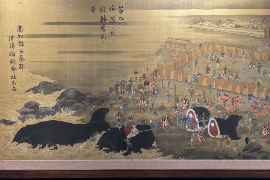 Exhibits include a full-sized model of the colourful whaling boats that were used from the Edo period, an impressively-sized model of a sperm whale, and two whale skeletons. There are real tools used for whaling and paintings showing how traditional whaling was conducted. The history of whaling is presented and there’s a corner about John Manjirō, a Kōchi native whose adventures at sea and in America led to the opening of Japan. On the second floor are exhibits about the natural history of whales. All exhibits are accompanied by full explanations in correct English.