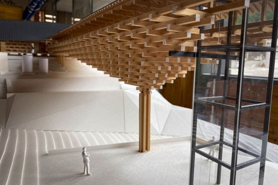 Built in 2010, this gallery was designed with the intention of creating a forest-like building that blends in with the forests of Yusuhara. The unique structure represents branches and leaves that spread out and create light and shadows, like sunlight filtering through trees.