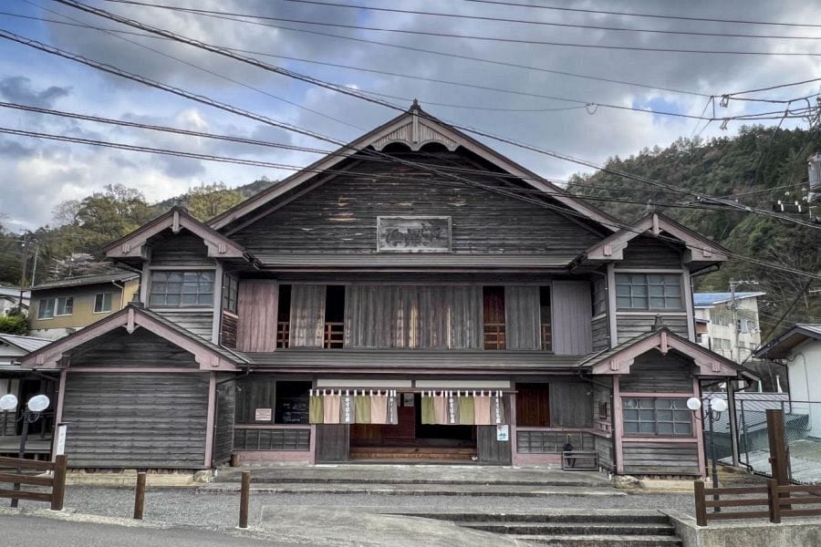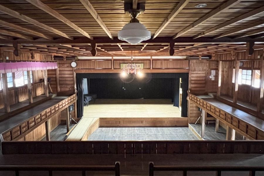 Yusuhara-za was built in 1948 in the style of the Taishō period and was relocated and restored at the current site in September 1995\. The style is Japanese-Western style, with a modern exterior and a traditional kabuki stage with a _hanamachi_ promenade. It’s the only wooden playhouse in Kōchi Prefecture. Today it’s used as an informal community centre and a venue for plays, kabuki, and film screenings. The theatre was slated for demolition, but in 1987, Kuma Kengo became involved in the campaign to save it. When he visited Yusuhara, he was impressed by the wooden architecture of the theatre and was inspired to create new buildings of similar quality using timber from the town. This was the starting point on his career as a world-renowned architect.
