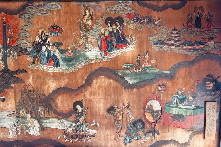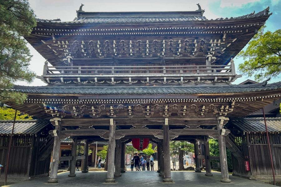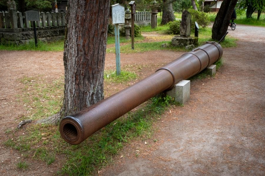 The Amanohashidate sandbar is one of Japan’s three most celebrated scenic views. It’s located in Miyazu Bay in northern Kyōto Prefecture in the Tango-Amanohashidate-Ōeyama Quasi-National Park. It was formed when sand and gravel were carried by the western coastal current of Miyazu Bay and collided with the current of the Aso Sea driven by the flow of the Noda River. According to the Kojiki (Records of Ancient Matters), Japan’s founding deities Izanagi and Izanami lowered the sandbar from the sky.