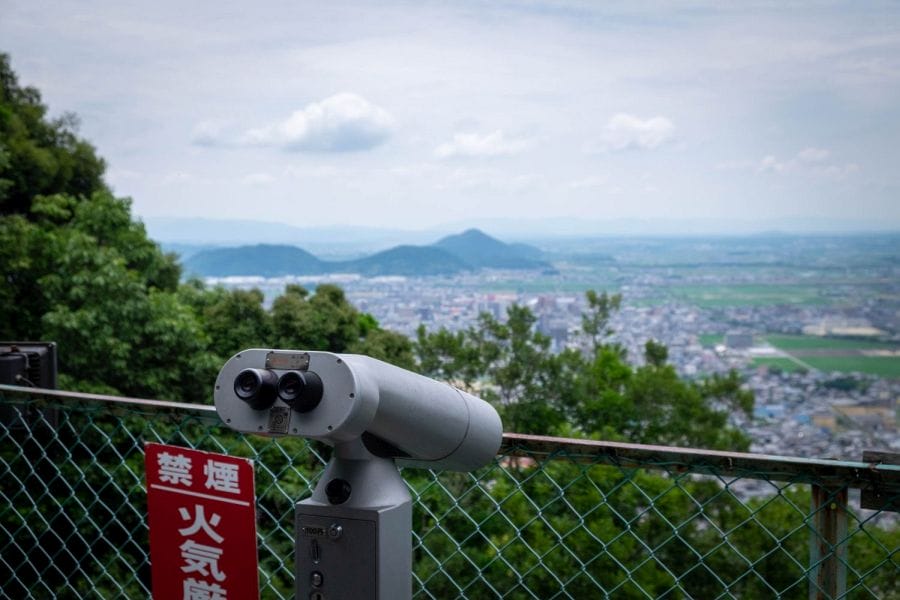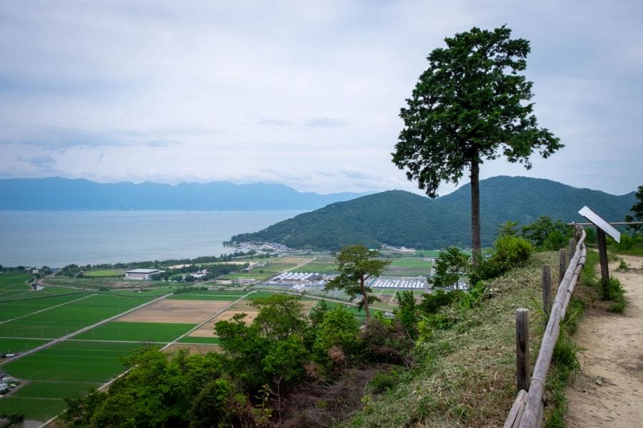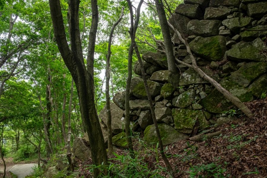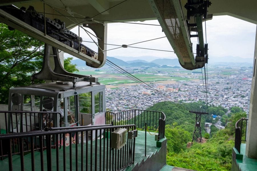 Although the buildings are long gone, the remaining stone walls are still striking. You can reach the summit by taking the cable car from the station beside Himure Hachiman Shrine or by following the hiking trail behind it. Near the cable car station is an observation deck with sweeping views towards Mt. Azuchi and Mt. Kinugasa, both known for their own historic castles. The summit area also includes Zuiryū-ji Temple and a small Shintō shrine. Paths wind among the ruins, opening up vistas of Lake Biwa, the Suigō waterways, and the surrounding mountains.
