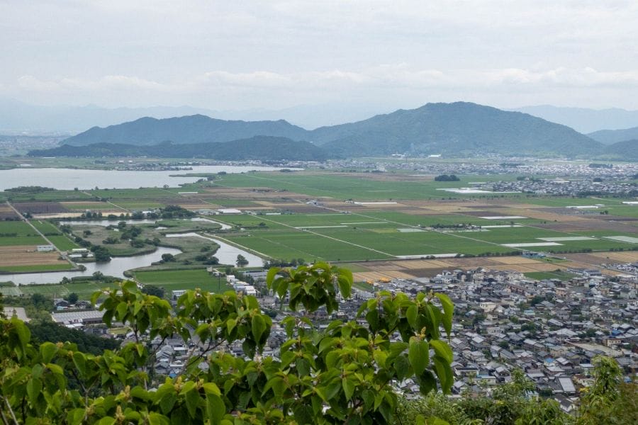 The town of Ōmihachiman spreads south from a long, narrow mountain ridge known as Mt. Hachiman. For a brief but important period during the Sengoku era, this ridge was crowned by a major fortress. Today, the summit can be reached either by cable car or by a well-maintained hiking path. If you explore the historic canal that once formed part of the castle’s defences, you can look up and spot the stone walls of the main enclosure high above the town.