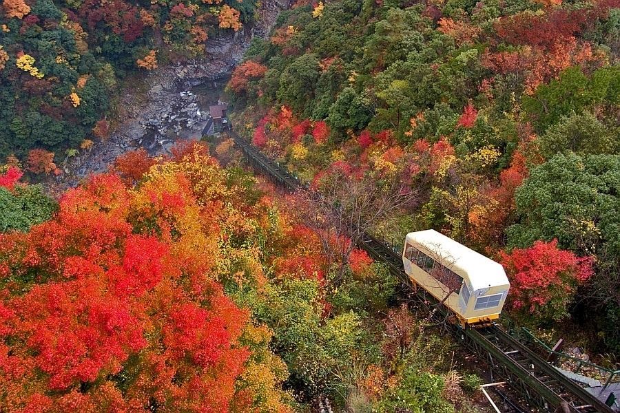 Due to the steepness of the terrain in the valley, where the spring emerges is sometimes not quite where it’s convenient to place a hotel, so the outdoor baths are located above or below the accommodation itself, and a charming funicular railway takes you to the open air bath. The view from the bath changes with the seasons.