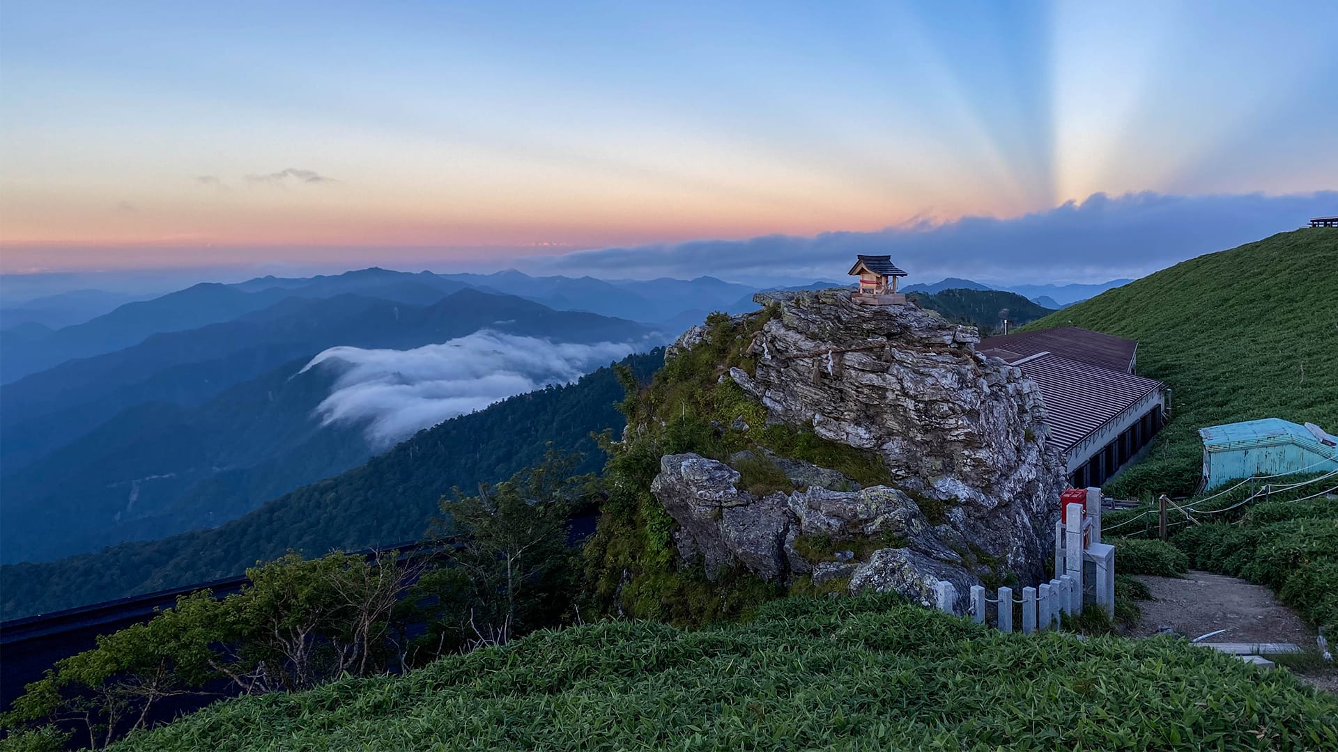 Mt. Tsurugi may sound like a tough climb. And it is, but there’s also a chair lift that takes you to within 900 m of the peak. The lift starts at Minokoshi station and the ride up to Nishijima takes about 35 minutes. It’s the longest chair lift in Japan. If you’re planning to take it in cold weather, wrap up warm! The top of Mt. Tsurugi is above the treeline, and it’s carpeted with attractive sasa bamboo. There’s a lodge at the summit where you can stay, and in the morning, you may be treated to an amazing view of a sea of cloud. There’s also a shrine, weather towers, and wooden boardwalks that lead to various viewpoints with panoramic views out over the surrounding mountains. Dedicated hikers can climb the entire mountain from the trailhead at Minokoshi near the lower chairlift station. The hike takes about two hours one way. On a clear day the view from the summit reaches out to the Pacific Ocean, the Seto Inland Sea, the Kii Peninsula and Okayama Prefecture on mainland Japan.