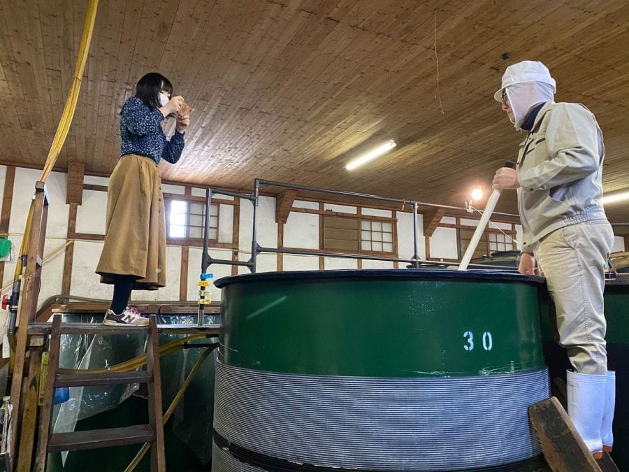 “There are three of us, me, my father, and my younger brother. Either I or my father are in charge of brewing quality. We manage everything using clipboards!”