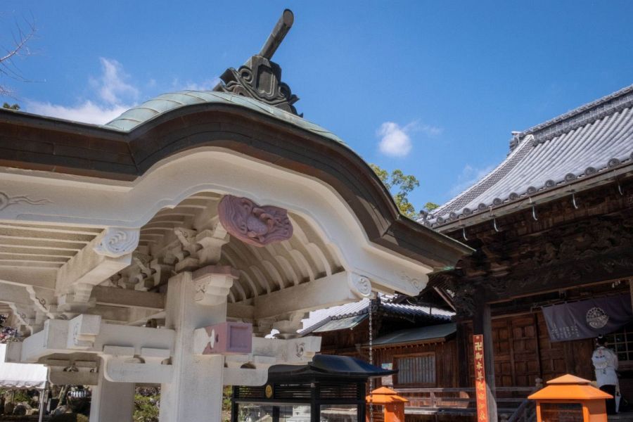 In the 8th century, Gyōki carved the main image of Shaka Nyorai and founded the temple at the request of Emperor Shōmu. When Kūkai visited around 810, he dug a well here to relieve a drought. Emperor Kameyama, who reigned from 1259-74 as monk‐emperor, was a sincere worshipper of Kobo Daishi and stayed at Konsen-ji Temple for a while on a pilgrimage of Shikoku. A building imitating the Sanjusangen Hall in Kyoto was erected, and 1,000 thousand-armed Kannon statues were enshrined. The mountain behind was named “Kameyama”. A sutra repository was established, and it was crowded with learned priests pursuing their studies. Since then, the temple had a deep connection with the imperial family, and the tomb of Emperor Chōkei is behind the Main Hall.