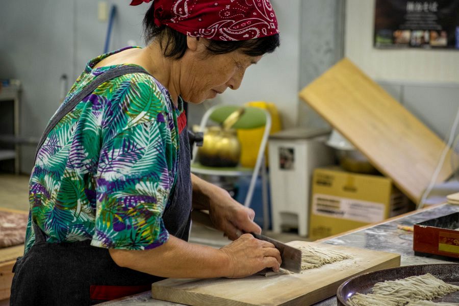 If you’d like to see how the rough brown grains are turned into smooth and savoury noodles, Atelier Tsuzuki is the place. Tsuzuki-san is something of a global celebrity these days, known not only for her soba teaching skills, but also for her prize-winning traditional songs.
