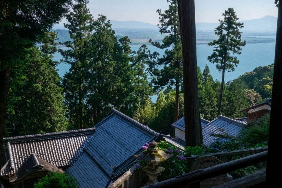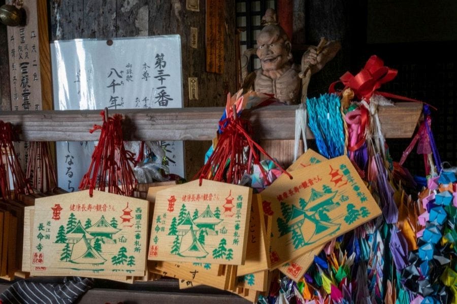 Chōmei-ji is the thirty-first temple on the Saigoku Kannon Pilgrimage, a circuit of thirty-three temples across the Kansai region dedicated to the bodhisattva Kannon. In earlier times, pilgrims would arrive by boat after visiting Hōgon-ji on nearby Chikubu Island, landing at the wharf below the mountain before making the climb to the temple.