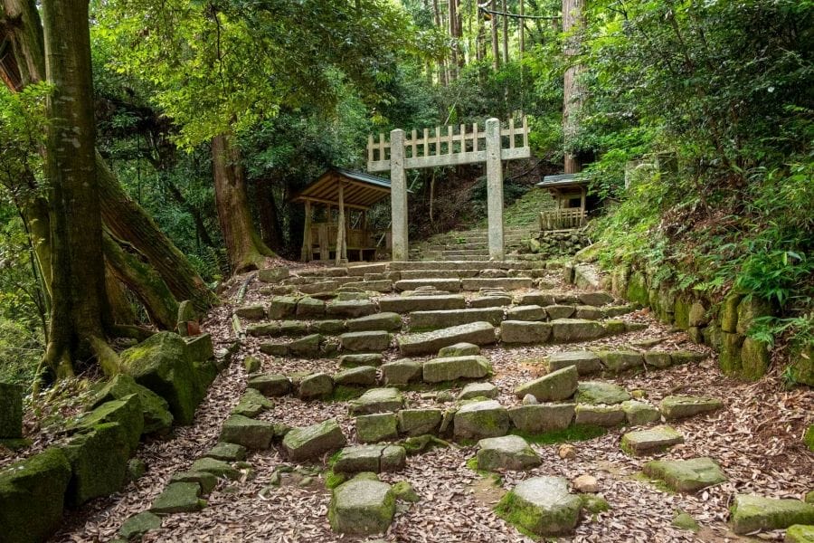 A little further back is the Tarobō Gongensha building, and scattered around the wooded area behind the main hall are exposed megaliths. These large stones are thought to be remnants of ancient nature worship that predated the temple’s Buddhist foundations, hinting at the site’s much older spiritual significance.