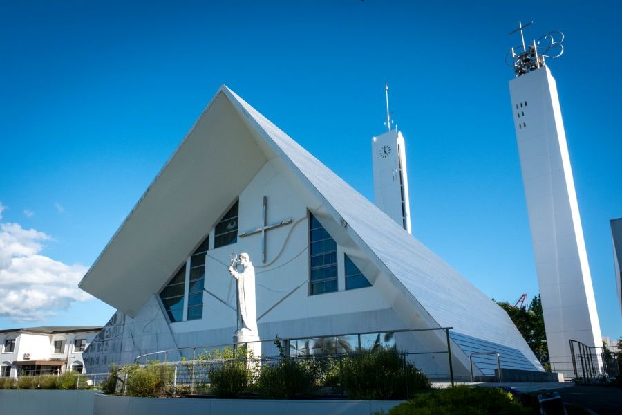 In 1952, a Catholic church was built in Yamaguchi to commemorate the 400th anniversary of Spanish missionary Francis Xavier’s arrival in Japan. It burnt down in 1991 and was rebuilt in 1998 using donations from citizens. The modern design represents a large tent. It houses a museum of exhibits related to Xavier’s life and the development of Christianity in Japan. Steps from the church carpark lead up to Kameyama Park which offers a panoramic view over the city.