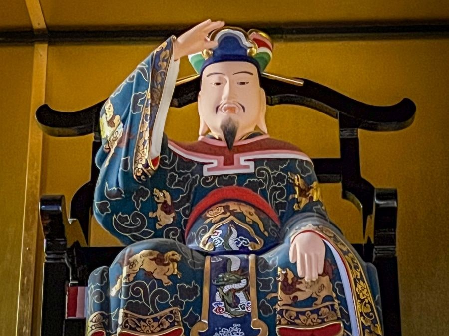 In front of Rurikō-ji Temple is a mounted statue of Ōuchi Hiroyo, the 24th head of the powerful Ōuchi clan during the Middle Ages who, as a leading vassal of the Muromachi shogunate, spent a lot of time Kyōto. He developed the city of Yamaguchi in imitation of Kyōto and sought to make his city as culturally sophisticated as the capital.